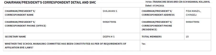 Affiliation Upgradation Letter Trust Certificate Fitness Certificate Fee Structure Result Analysis Fire Safety Certificate Annual Planner President's Correspondance Details PTA Section